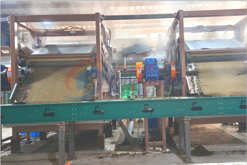 另一方面,普通帶式壓濾機雖能保持纖維完整,但處理牛糞時效果不佳。由于牛糞含有大量稻殼、秸稈等物質(zhì),可壓縮性高,傳統(tǒng)帶機運行時濾帶容易起包打折,設(shè)備壽命普遍較短,故障頻發(fā)。