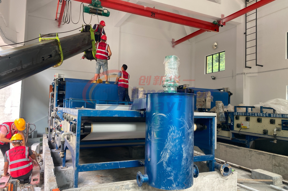 湖北省市政污泥產量大,傳統脫水設備處理后的泥餅含水率高,污泥增量導致運輸成本高、二次污染風險突出,亟需深度脫水技術實現減量化與資源化。本次項目選用了我們帶寬2m的高壓帶式壓濾機,滿足連續運行需求。