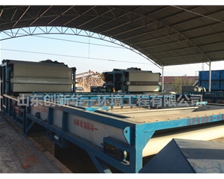 廂式壓濾機通過板框擠壓,物料被過濾介質(zhì)截留形成濾餅排出濾室,使污泥內(nèi)的水通過過濾布排出,達(dá)到脫水目的。