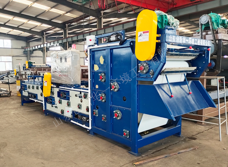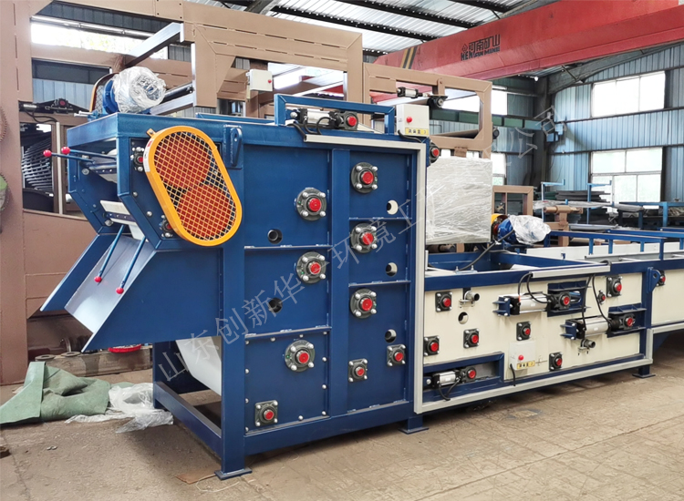 三網帶式污泥脫水機是我公司引進、消化、吸收美國技術研制生產的全新一代脫水設備,它處理能力大,脫水效率高(從進漿濃度2-5%可直接提高至30-35%以上),能耗低(噸耗電不高于3KW,僅為雙螺旋擠漿機的1/10)的優點,它不僅解決了普通雙網壓濾機對原料脫水時所出現的跑料問題,同時也解決了網兩端料壓力較小的問題,而且結構簡單,安裝方便,是黑液提取或漿料濃縮的理想產品。