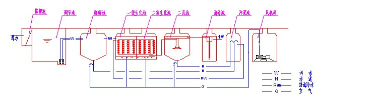 2、二級生物接觸氧化處理工藝均采用推流式生物接觸氧化,其處理效果優于完全混合式或二級串聯完全混合式生物接觸氧化池。并比活性污泥池體積小,對水質的適應性強,耐沖擊負荷性能好,出水水質穩定,不會產生污泥膨脹。池中采用新型彈性立體填料,比表面積大,微生物易掛膜,脫膜,在同樣有機物負荷條件下,對有機物去除率高,能提高空氣中的氧在水中溶解度。