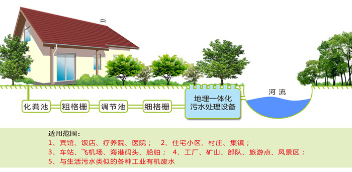 1、社區污水處理設備埋設于地表以下,設備上面的地表可作為綠化或其他用地,不需要建房及采暖、保溫。處理設備一般用碳鋼和玻璃鋼制作,并進行防腐處理。