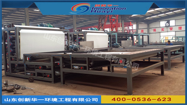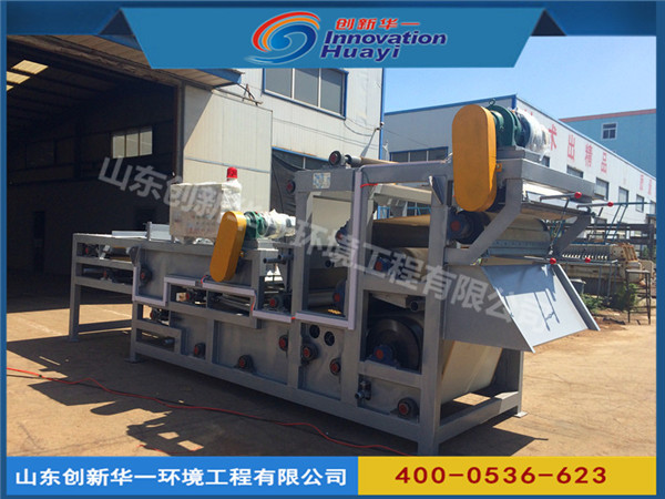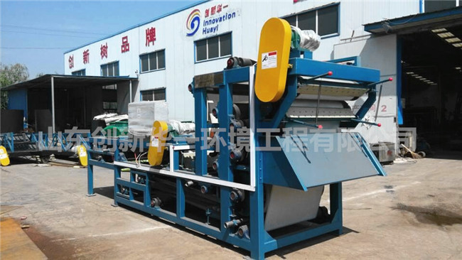 4、帶式一體機(jī)的濃縮過程如下:污泥進(jìn)入濃縮段時(shí)被均勻攤鋪在濾布上,好似一層薄薄的泥層,在重力作用下泥層中污泥的表面水大量分離并通過濾布空隙迅速排走,而污泥固體顆粒則被截留在濾布上。此時(shí)污泥中固體的截留率是很高的,隨著濾布的行走,進(jìn)一步脫去一部分水分,并且相粘結(jié)形成流動(dòng)性較差的漿狀污泥。由于污泥流動(dòng)性差,進(jìn)入后續(xù)壓濾機(jī)的高壓剪切段后不容易被擠出來,因此脫水效果得到保證,泥餅的含固率提高很明顯。