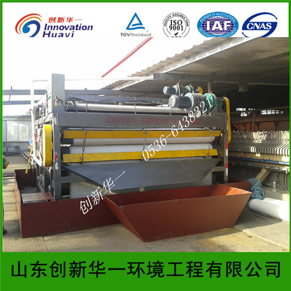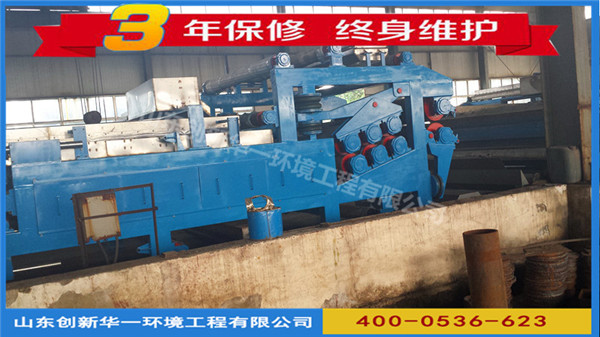 1、采用超長過濾與強(qiáng)力對(duì)輥壓榨于一體的脫水方式,處理量大,壓出來的濾餅含水率比普通機(jī)低10%。