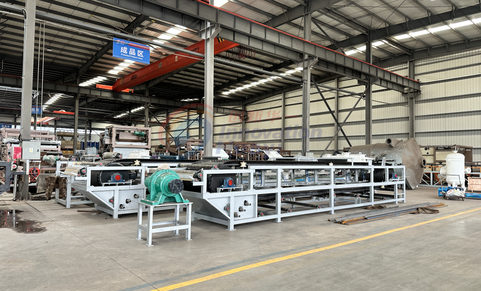 尾礦帶式真空過濾機采用了固定真空盒,膠帶在真空盒上滑動,真空盒與膠帶間構成運動密封的結構型式,以真空負壓為推動動力實現固液分離的設備。在結構上,過濾區段沿水平長度方向布置,能連續自動完成過濾、濾餅洗滌、卸 渣、濾布再生等工藝操作,并且母液有與濾餅洗滌洗液可以分段收集。具有過濾效率高、生產能力大、洗滌效率好,濾餅水分低、操作靈活、維護簡單等優點。