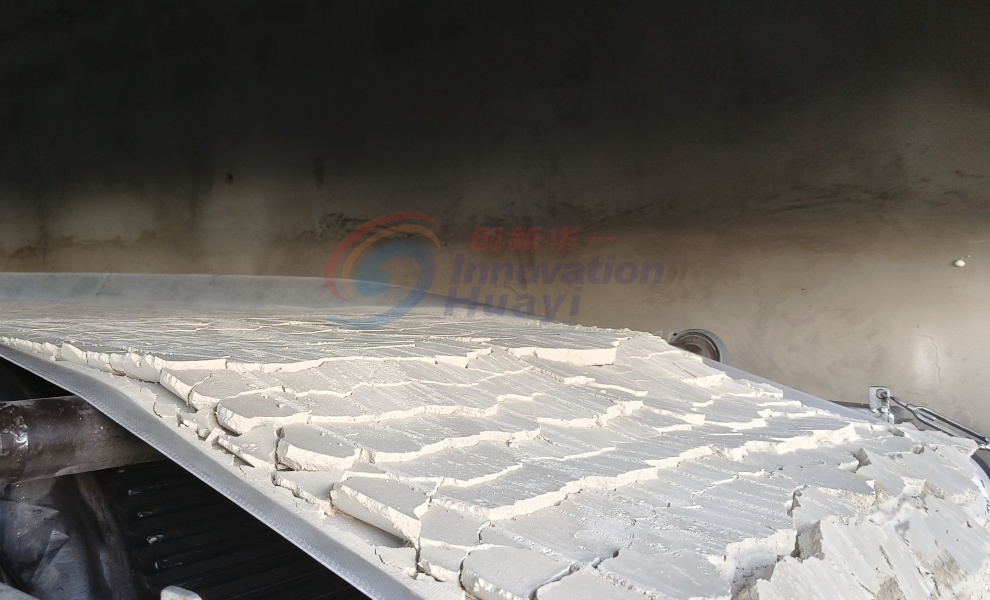7、含固量約50wt%的石膏,由布置在高位的石膏水力旋流站(一級脫水)自流下來,送至真空皮帶過濾機,進一步脫水至含固量不小于90wt%的石膏(含濕率不大于10wt%)。