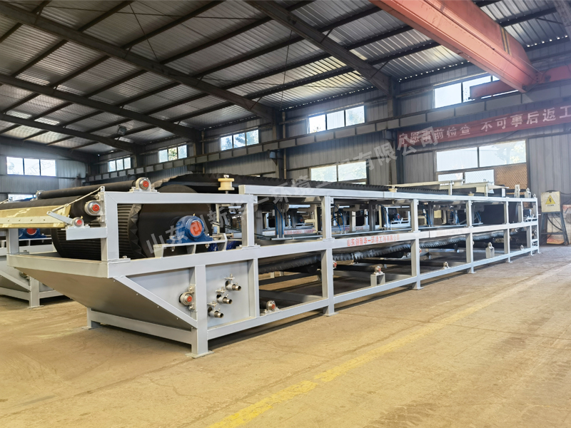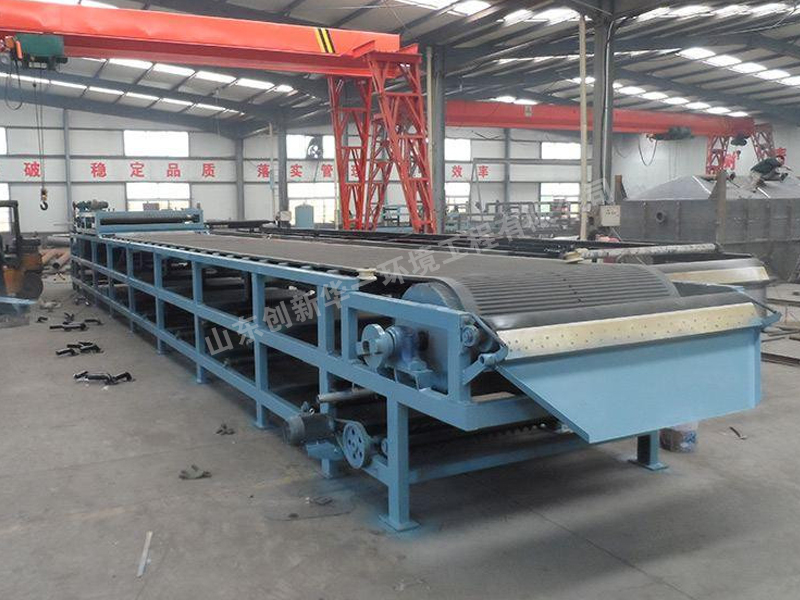1.真空行程:連續水平帶式真空過濾機過濾行程開始,料漿被均布在濾帶上,濾盤和濾帶同步向前移動,濾帶上的料漿在真空吸力的作用下進行抽漿,直到真空盤下金屬感應裝置,切斷真空為止。
