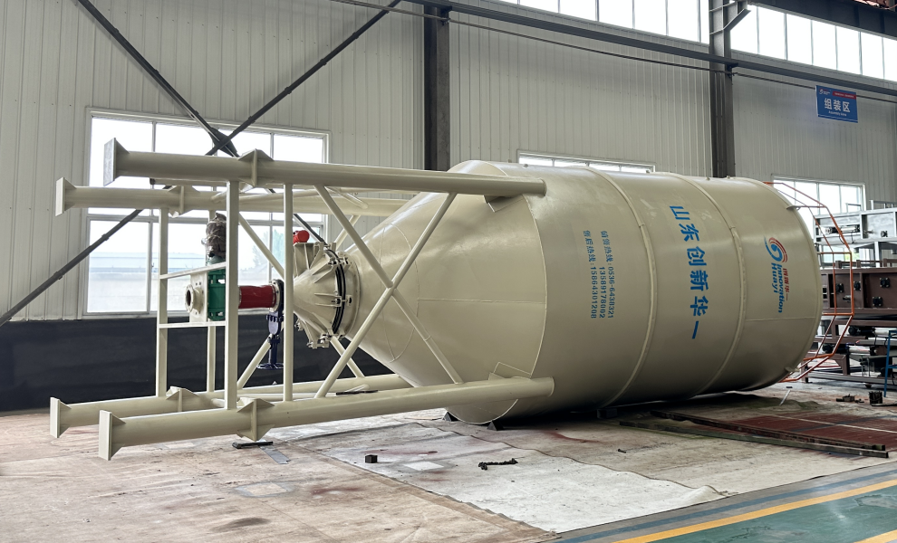 1、進料:石灰罐車來的石灰粉,經進料口正壓輸送進入石灰料倉